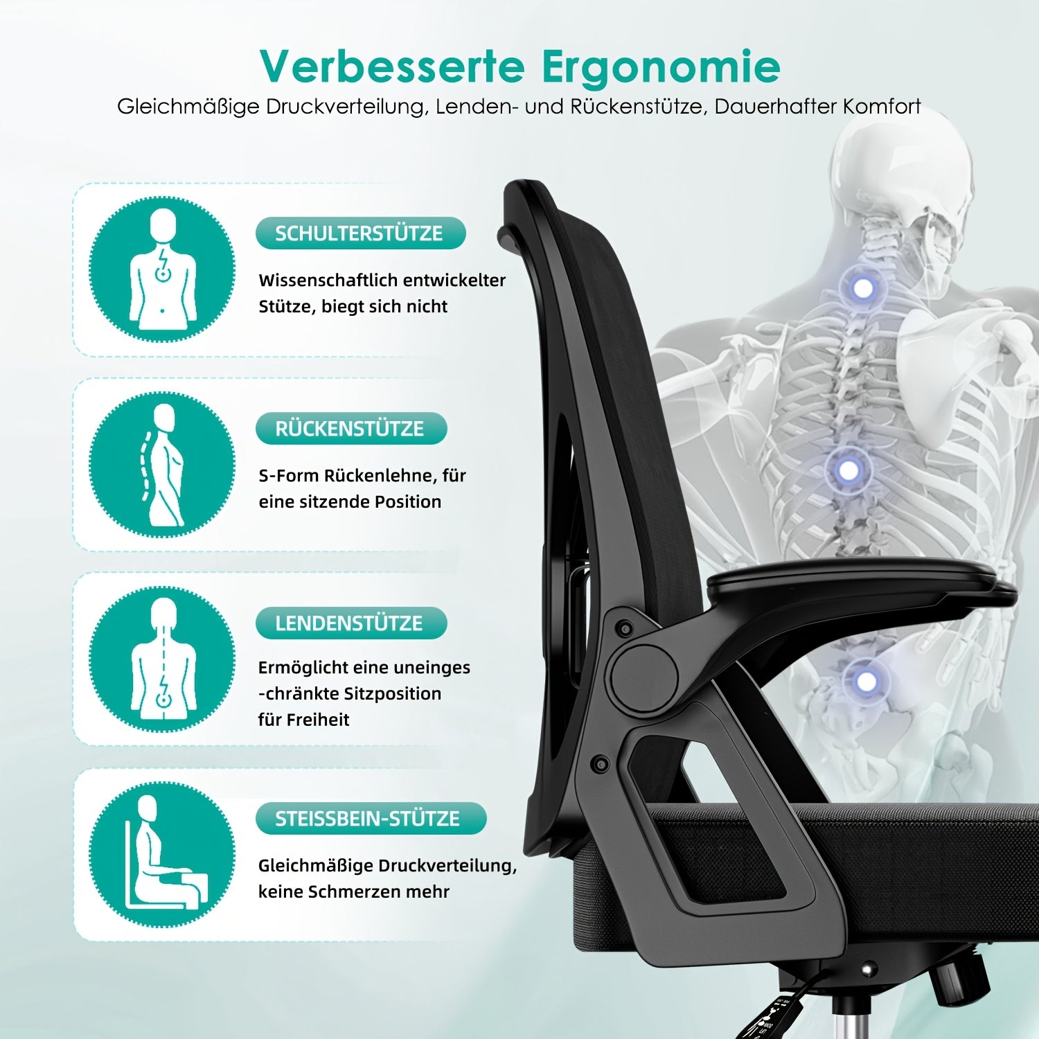 Mesh‑Rücken und Synchronmechanik ergonomischer Bürostuhl fürs Homeoffice,Lordosenstütze und Kopfstütze,