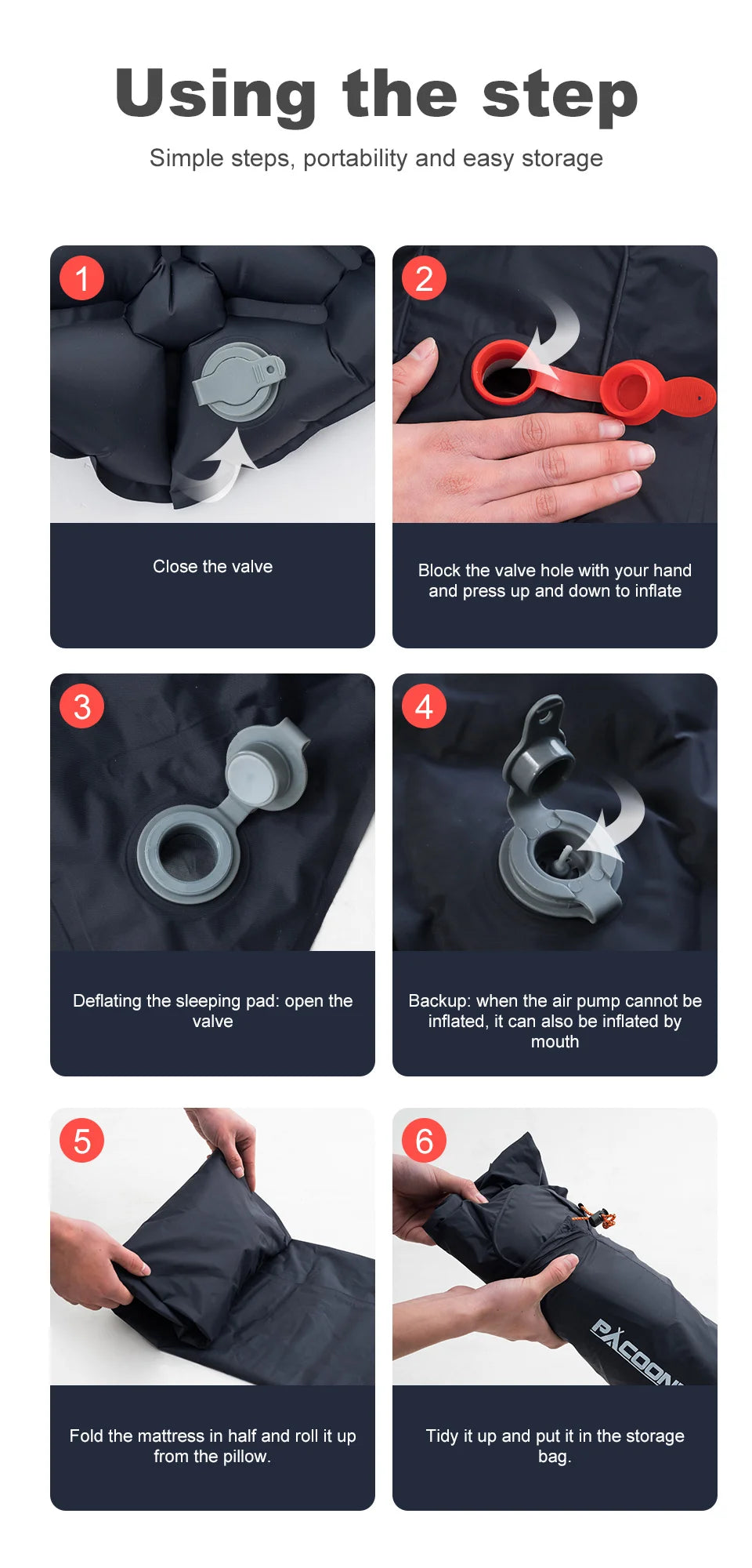 Erlebe erholsamen Schlaf unter freiem Himmel! Diese ultraleichte, faltbare Luftmatratze mit integriertem Kissen ist dein perfekter Begleiter für Camping, Wandern und Outdoor-Trips.